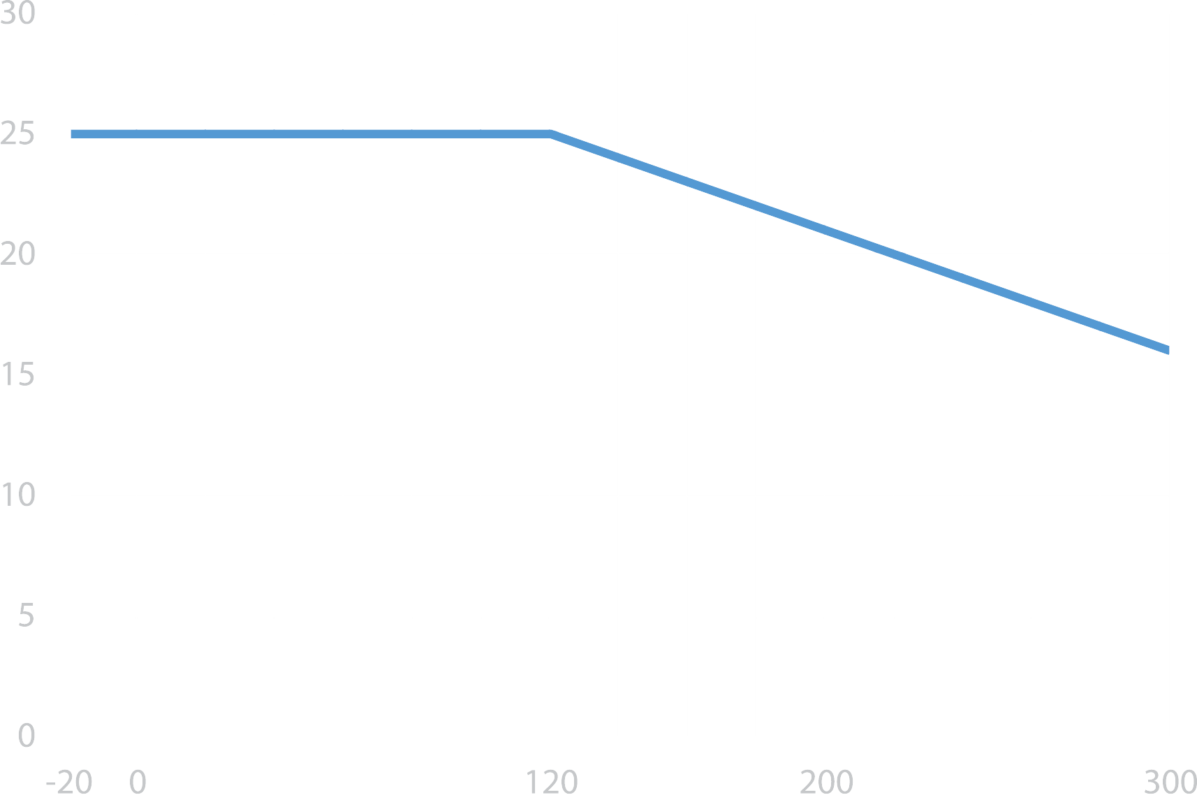 La pression nominale d’utilisation est indiquée dans les tableaux de chaque produit. Les conditions de service sont également liées à la température du fluide conformément au tableau.