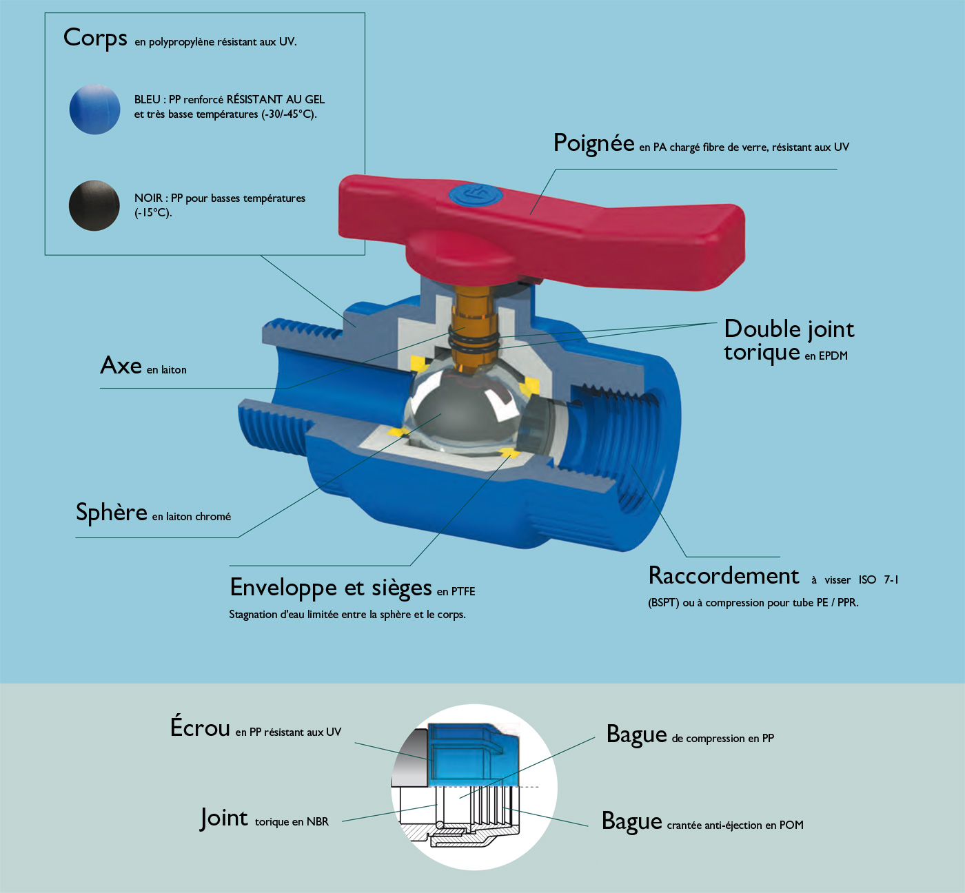 Cette vanne est particulièrement recommandée pour les installations en conditions climatiques extrêmes. Une conception innovante et des matériaux performants lui confèrent une résistance accrue aux cycles de congélation/dégivrage et aux rayons UV.