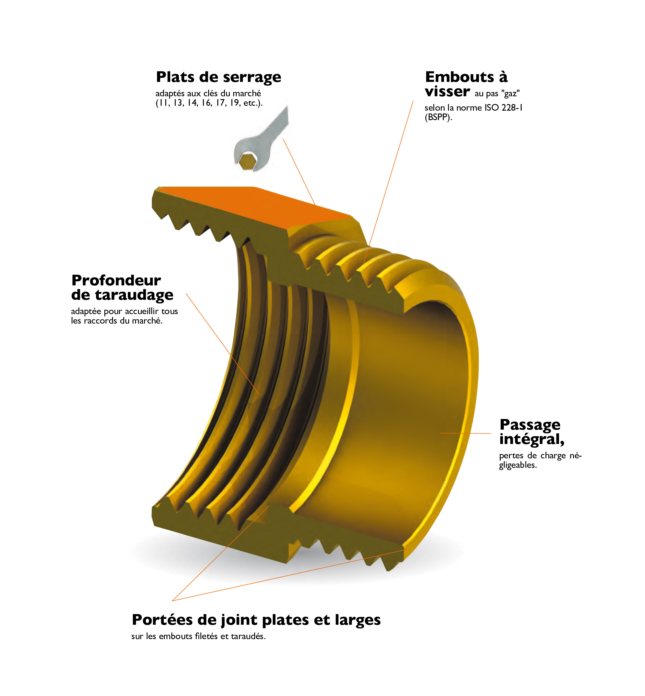 Les embouts filetés sont conformes aux normes ISO 7-1, DIN 2999 et BS 21.