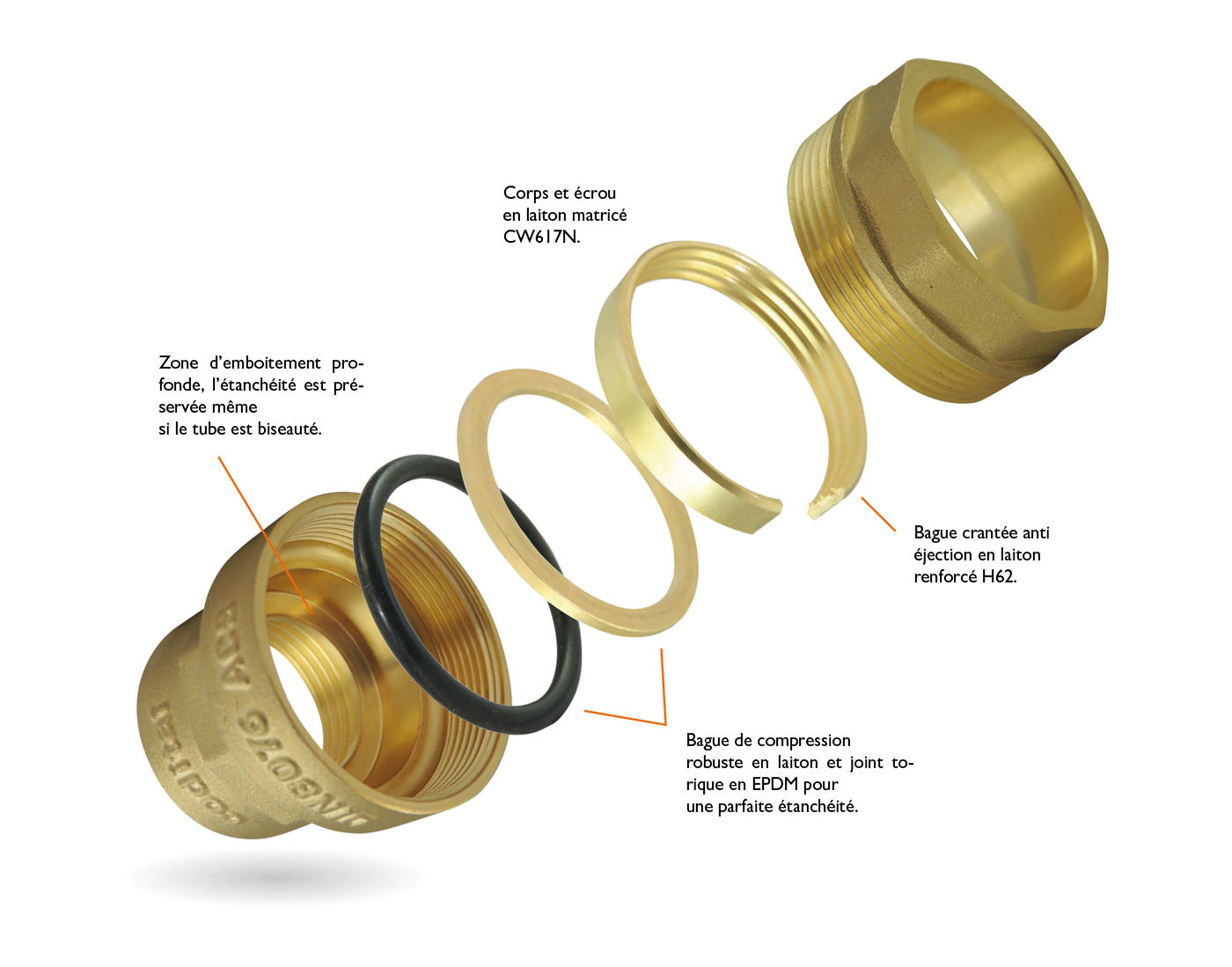 • Laiton CW617N selon la norme EN 12165 avec conformité aux exigences 4MS.